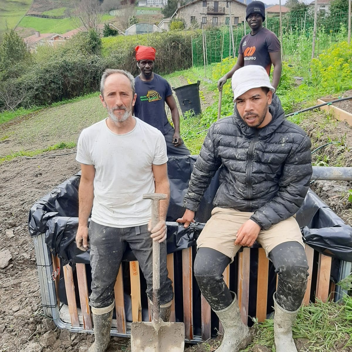 Gran y difícil proyecto con el que tuve la suerte de colaborar durante un año en mi tierra materna, Bermeo, integrando a colectivos inmigrantes sin papeles, orientándoles y formándoles en el campo. De igual forma que en el proyecto de Sant Joan Despí, en este proyecto el núcleo son las personas y la tierra, y como esta interrelación, esta simbiosis da resultados maravillosos. En Lurre Hurre, con Josu Ojinaga y Mirene, responsables del proyecto, y con Juanita, tía de Josu, baserritarra con más de 80 años. Juanita acudía a las huertas de Almike a visitar a los chicos y a darles sus siempre constructivos consejos a la hora de trabajar la tierra. Con las cestas que se hacían semanalmente se financiaba la pequeña beca de estos chicos, mientras regularizaban su situación, podían acceder a un trabajo digno y se integraban en esta sociedad nuestra.